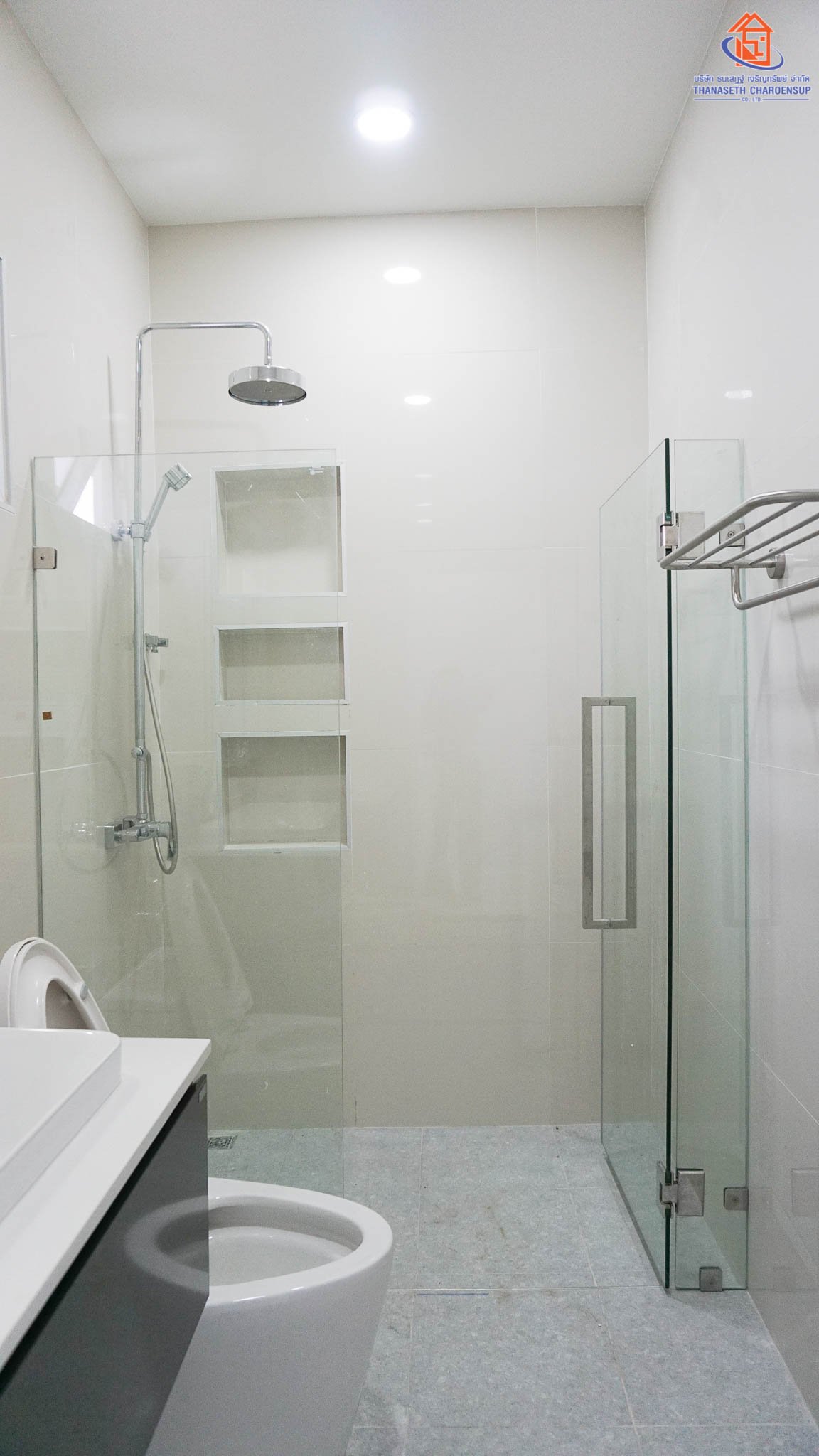 ห้องน้ำสวย สามารถออกแบบเองได้ พร้อมกระจกเทมเปอร์กั้นโซน เปียก/แห้ง