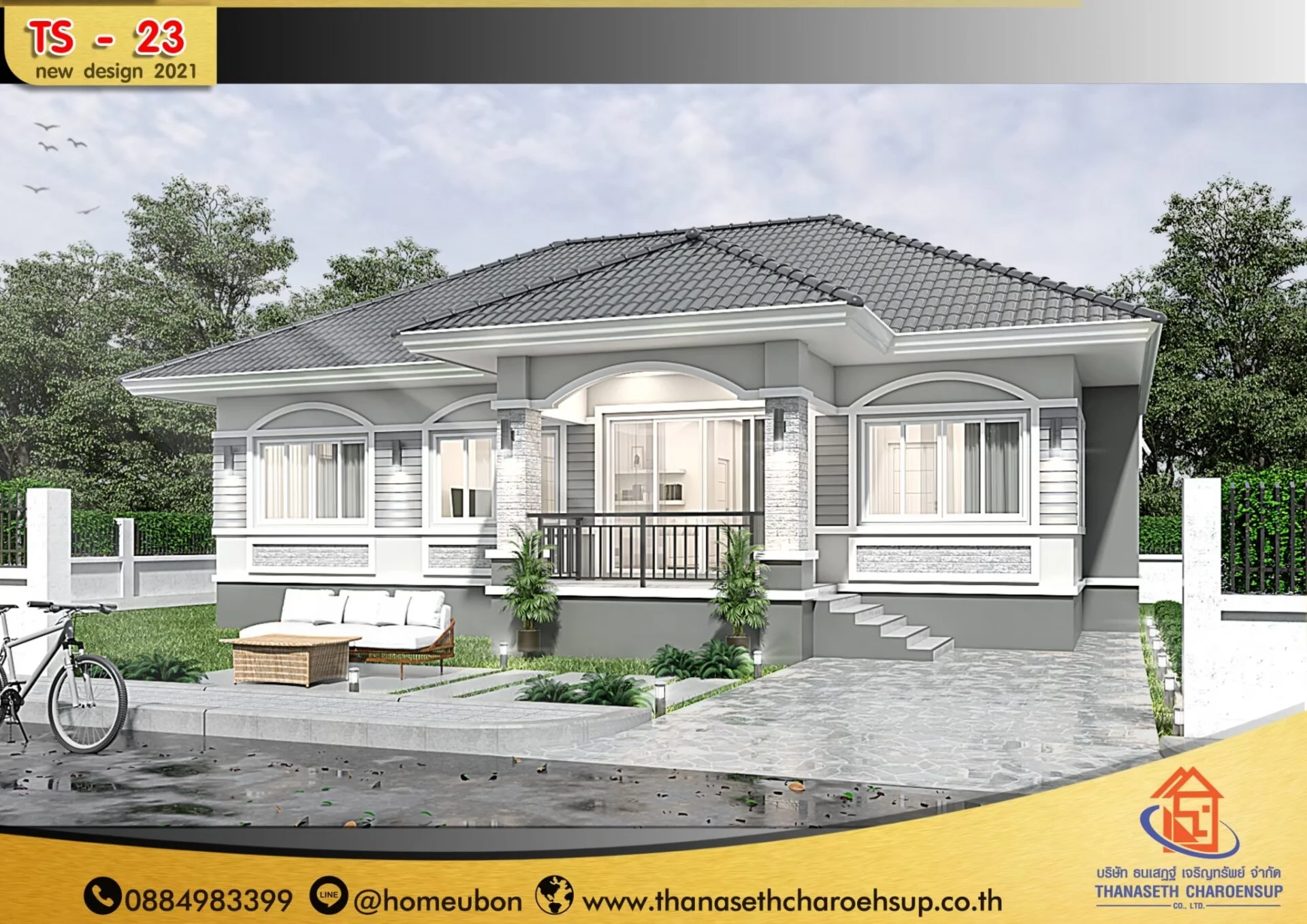 แบบบ้าน TS-23 เป็นแบบบ้านยอดนิยม และเป็นกระแสอยู่ในตอนนี้ ธนเสฏฐ์เจริญ์ทรัพย์ เราพร้อมให้บริการ รับสร้างบ้านพร้อมเข้าอยู่แบบครบวงจร
