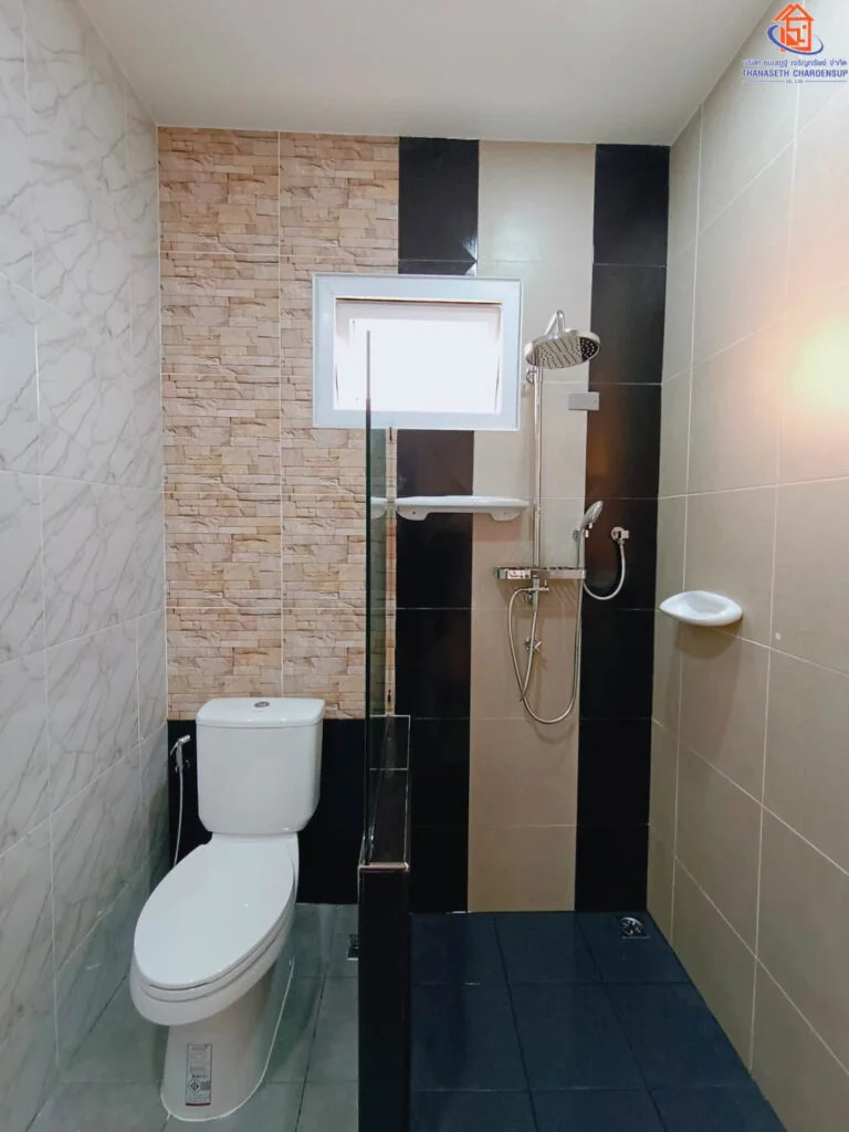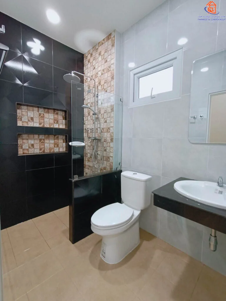 ห้องน้ำสวย สามารถออกแบบเองได้ พร้อมกระจกเทมเปอร์กั้นโซน เปียก/แห้ง