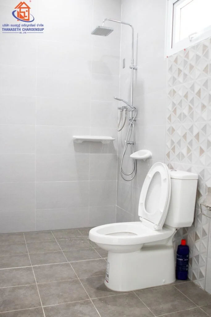 ห้องน้ำสวย สามารถออกแบบเองได้ พร้อมกระจกเทมเปอร์กั้นโซน เปียก/แห้ง