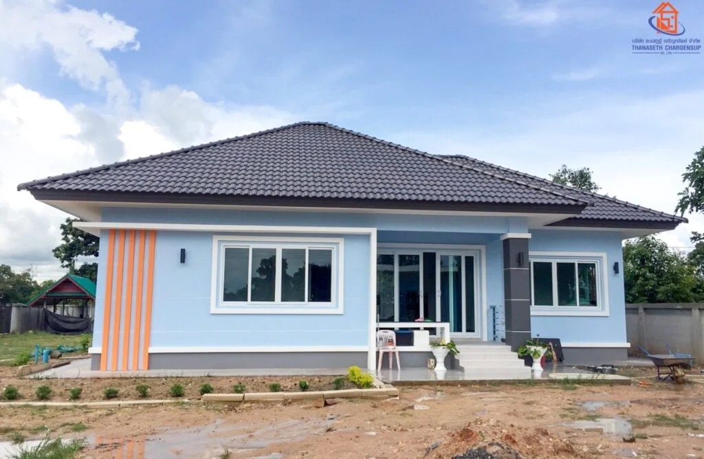 ผลงานรับสร้างบ้าน บ้านชั้นเดียวหลังคาทรงปั้นหยา อำเภอบึงบูรพ์ จังหวัดศรีสะเกษ