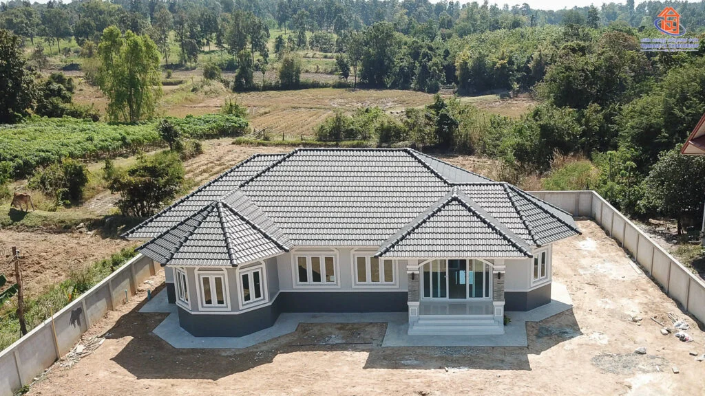 ผลงานสร้างบ้านสวย บ้านหลังคาทรงปั้นหยา อำเภอเมืองอำนาจเจริญ จังหวัดอำนาจเจริญ