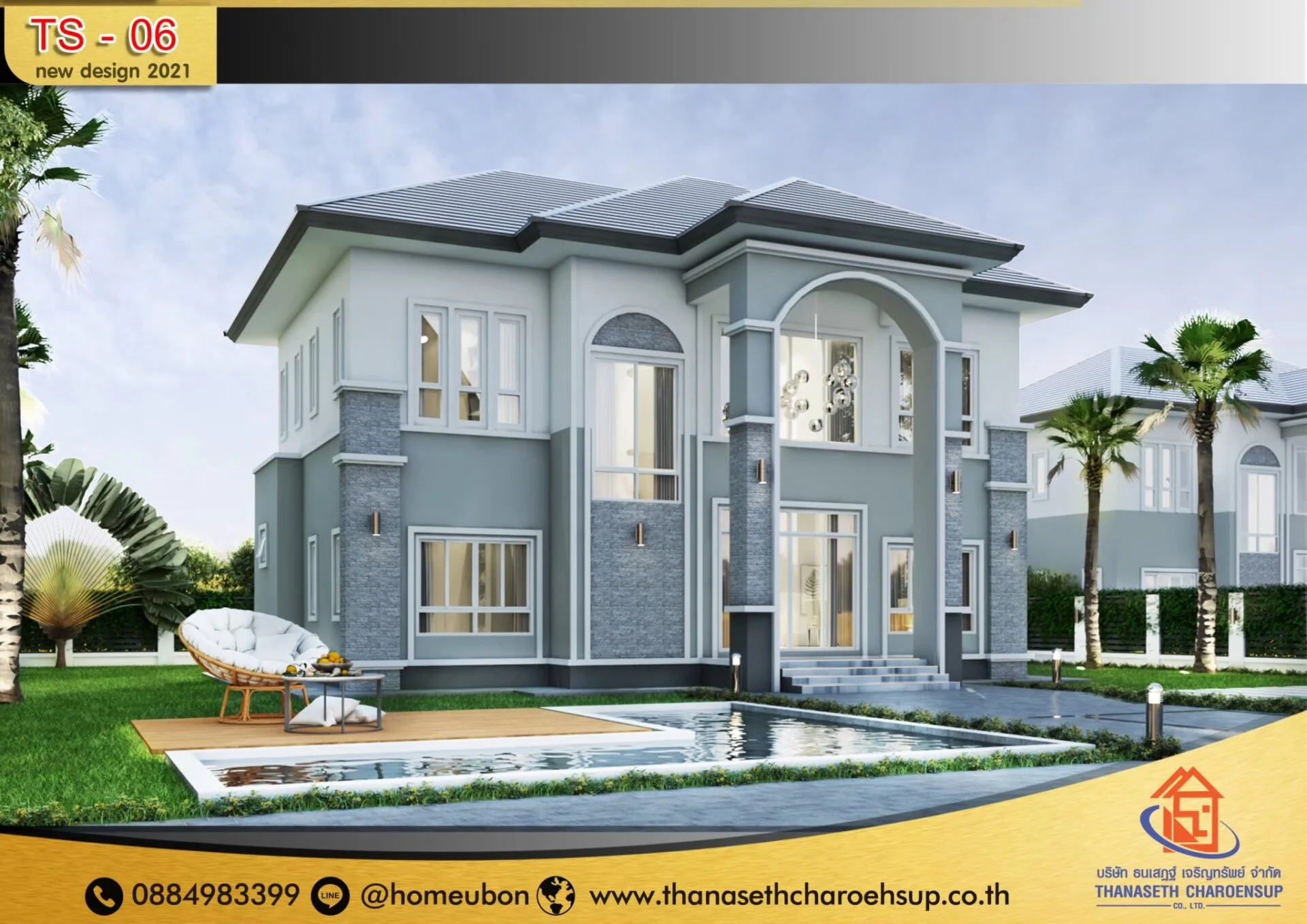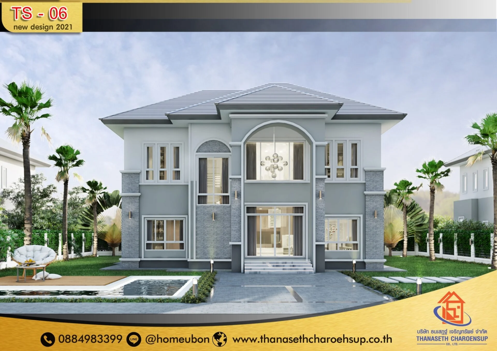 แบบบ้าน TS-06 แบบบ้านทันสมัย ออกแบบไว้อย่างลงตัว หรูหราโดดเด่นมีสไตล์ ผสมผสานความเป็นไทย