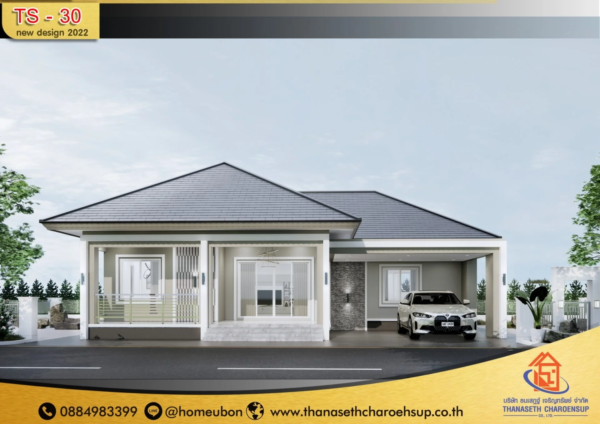 แบบบ้าน TS-30 เป็นแบบบ้านยอดนิยม และเป็นกระแสอยู่ในตอนนี้ ธนเสฏฐ์เจริญ์ทรัพย์ เราพร้อมให้บริการ รับสร้างบ้านพร้อมเข้าอยู่แบบครบวงจร
