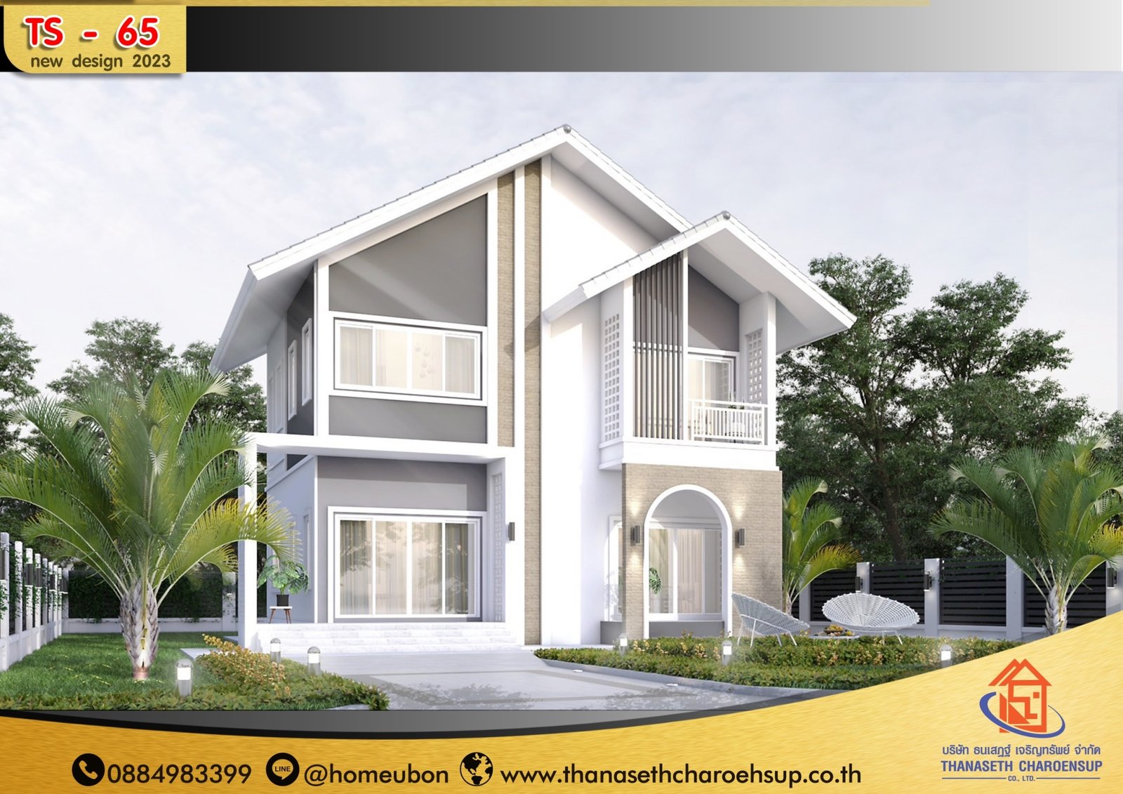 แบบบ้าน TS-65 แบบบ้านทันสมัย ออกแบบไว้อย่างลงตัว หรูหราโดดเด่นมีสไตล์ ผสมผสานความเป็นไทย