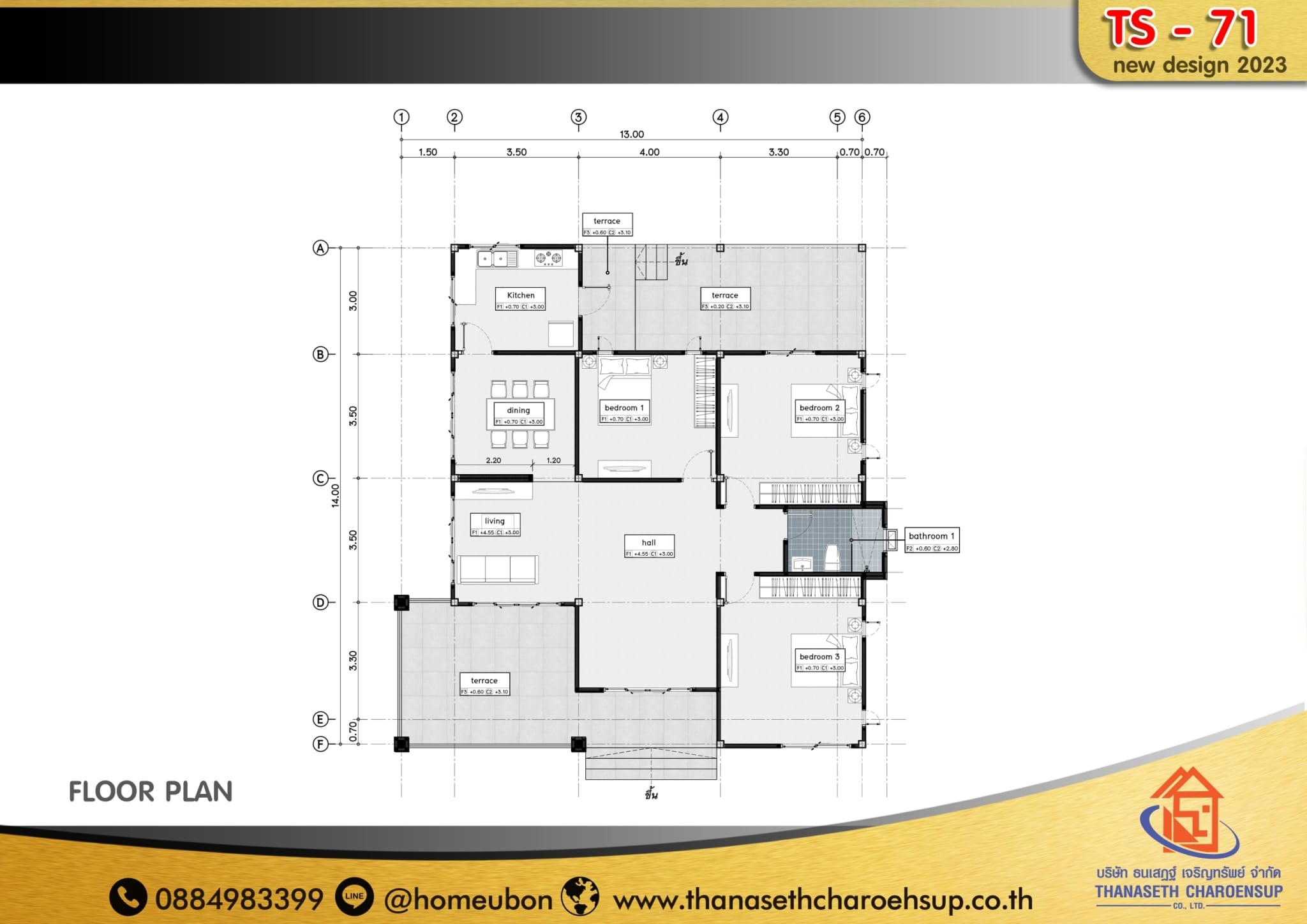 แบบบ้าน TS-71 บริษัท ธนเสฏฐ์ เจริญทรัพย์ จำกัด