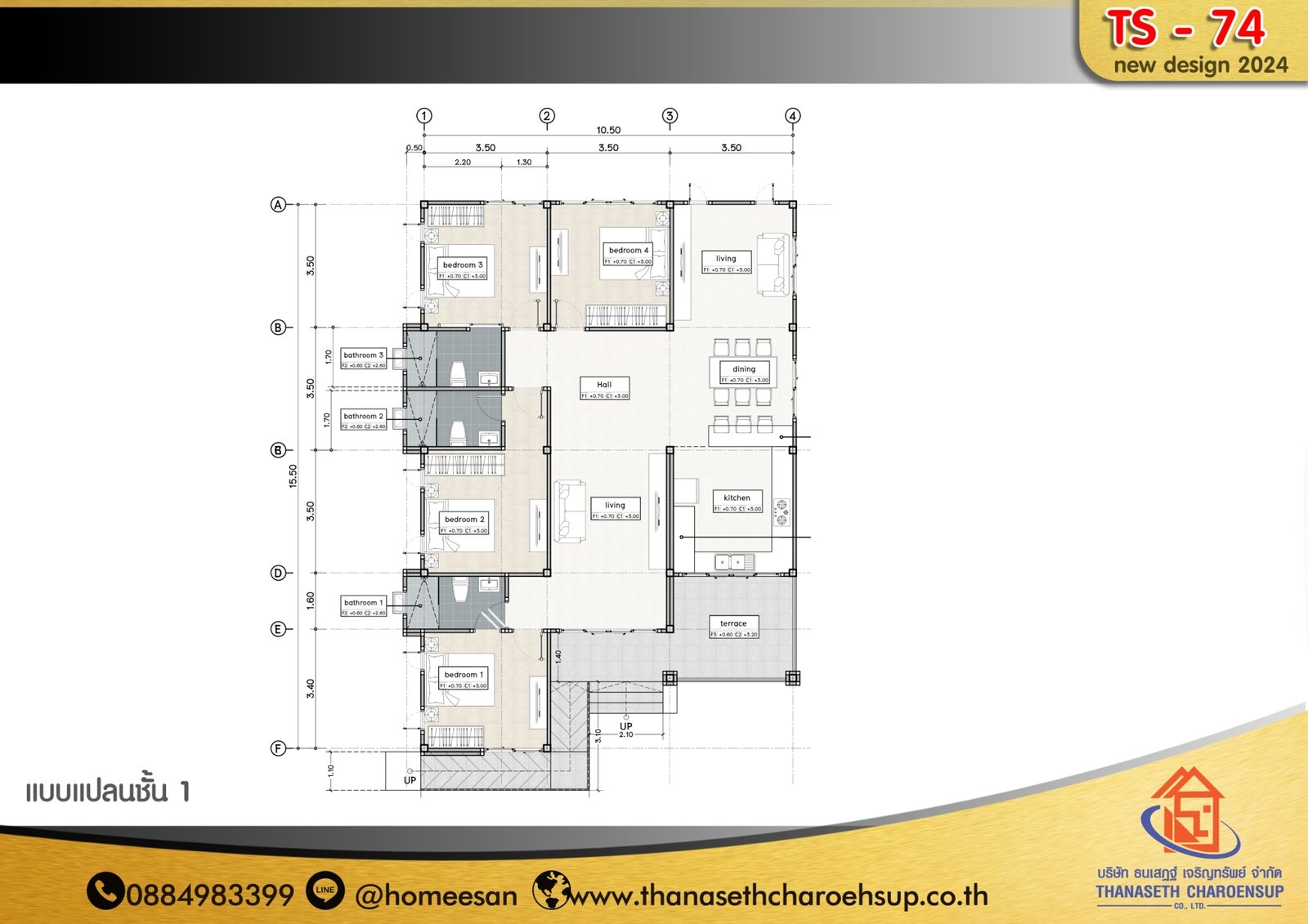 แบบบ้าน TS-74 บริษัท ธนเสฏฐ์ เจริญทรัพย์ จำกัด