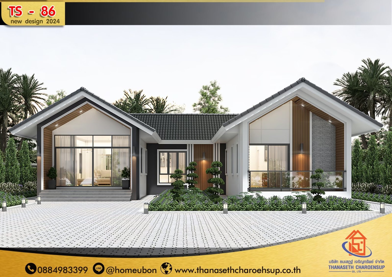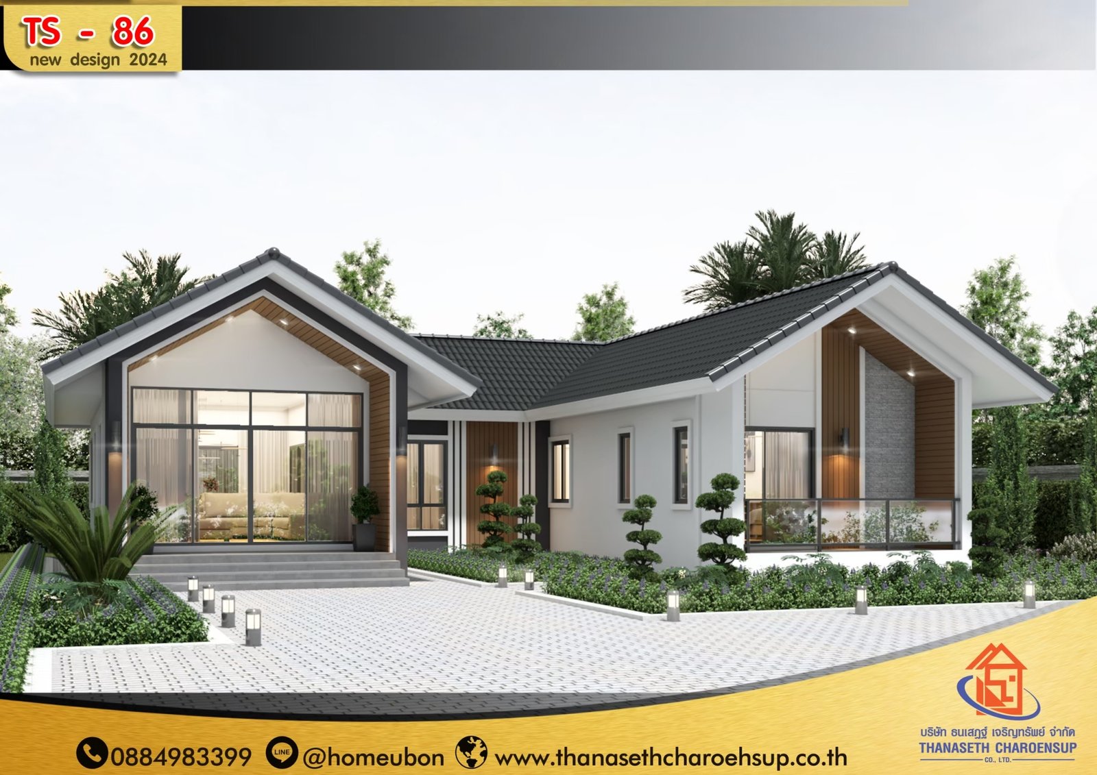 แบบบ้าน TS-86 เป็นแบบบ้านยอดนิยม และเป็นกระแสอยู่ในตอนนี้ ธนเสฏฐ์เจริญ์ทรัพย์ เราพร้อมให้บริการ รับสร้างบ้านพร้อมเข้าอยู่แบบครบวงจร