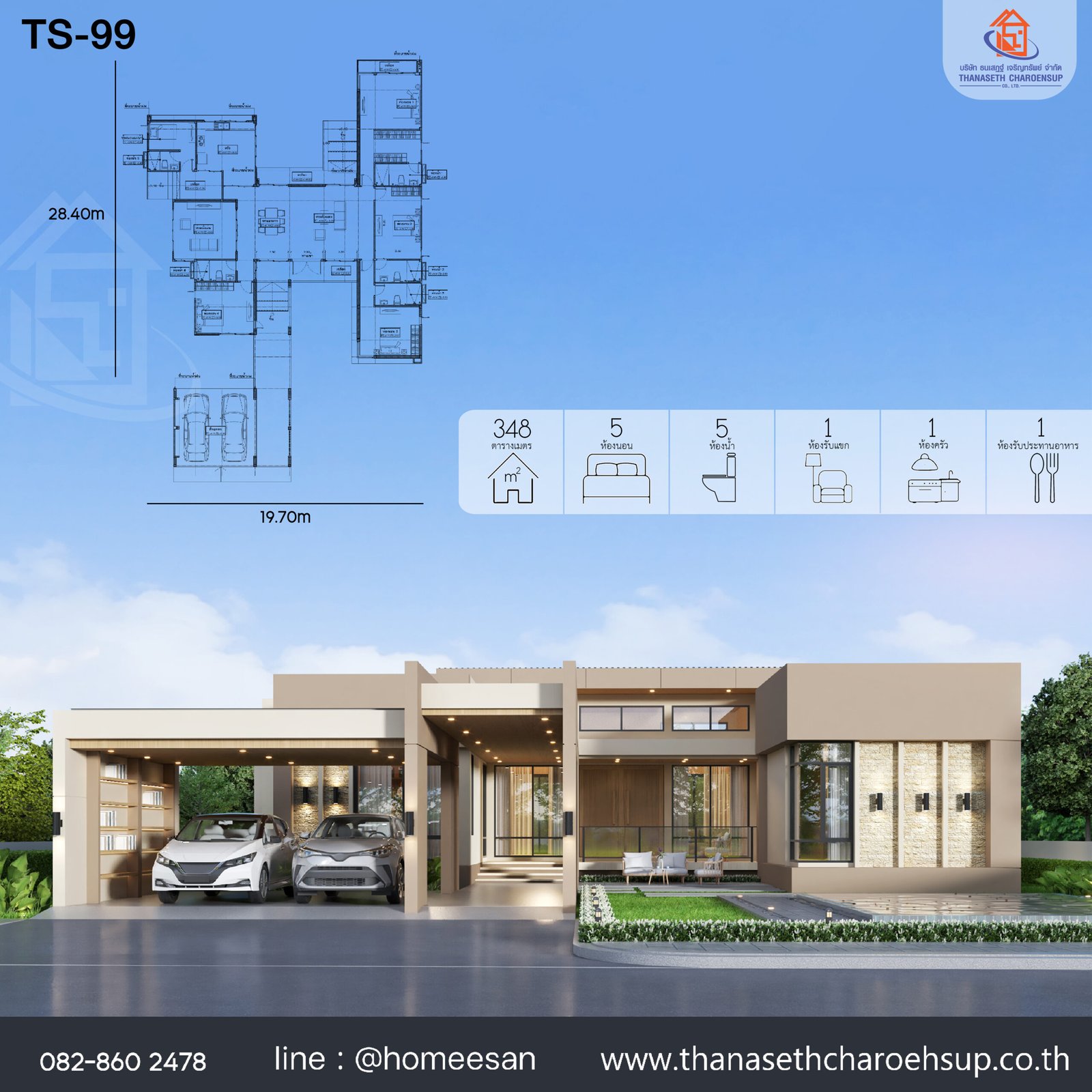 แบบบ้าน TS-99 บริษัท ธนเสฏฐ์ เจริญทรัพย์ จำกัด
